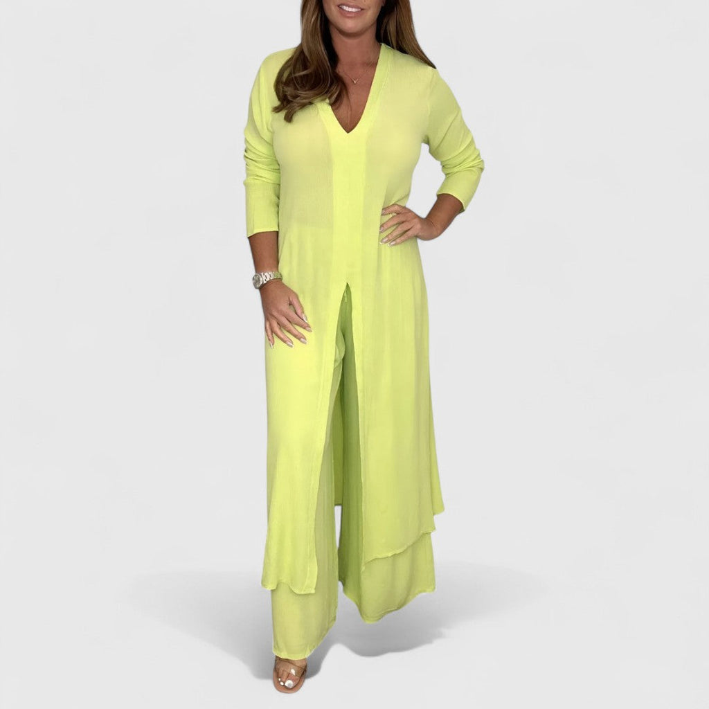 Unser beliebtes zweiteiliges Margherita Set bringt frischen Schwung in deine Frühlingsgarderobe. Ob gemeinsam getragen oder einzeln kombiniert – dieses Outfit verleiht dir mühelosen Stil und Komfort für sonnige Tage.
